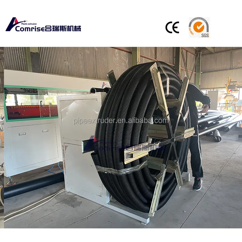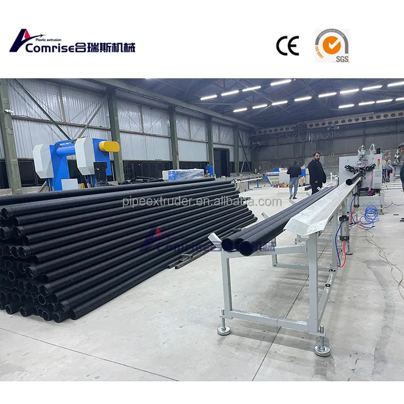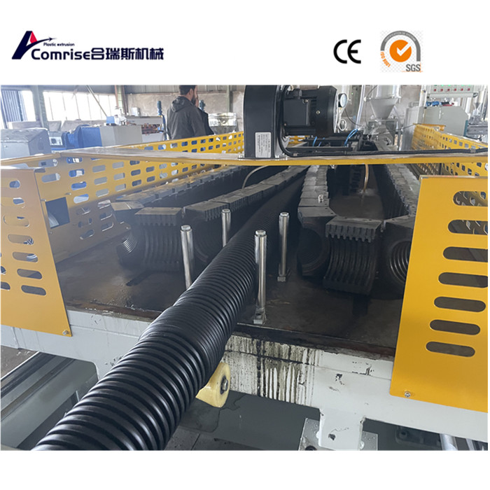 2. Corrugator: รูปร่างท่อหลอมเหลวเป็นรูปลูกฟูกโดยใช้แม่พิมพ์และการระบายความร้อนด้วยสูญญากาศ