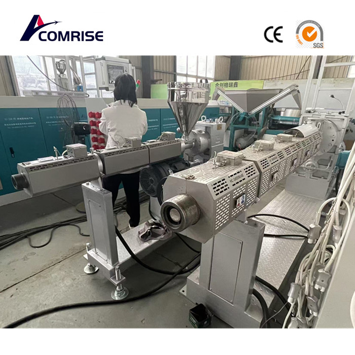 เม็ดพลาสติก→การให้อาหารสูญญากาศ→เครื่องอัดรีดสกรูเดี่ยว→การทำเครื่องหมายเส้นสายการรีดรีด→แม่พิมพ์→ถังสูญญากาศ→ถังระบายความร้อนด้วยน้ำ→เครื่องฉุด→เครื่องตัด→สแต็คเกอร์หรือเครื่องขยายอัตโนมัติและเครื่องขดลวด